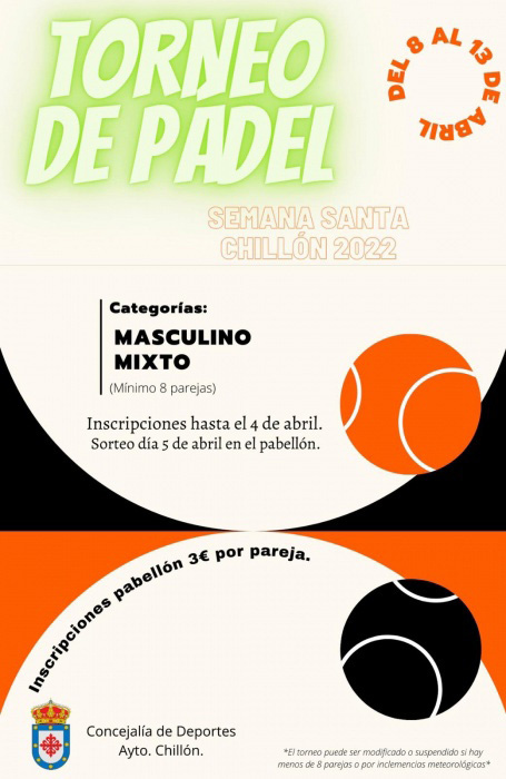 Abierto el plazo de inscripciones para participar en el Torneo de Pádel, Semana Santa 2022.