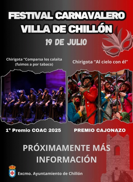Este verano, tendremos la oportunidad y el placer de disfrutar de dos actuaciones carnavalescas sin precedentes en el que será el Festival Carnavalero Villa de Chillón.