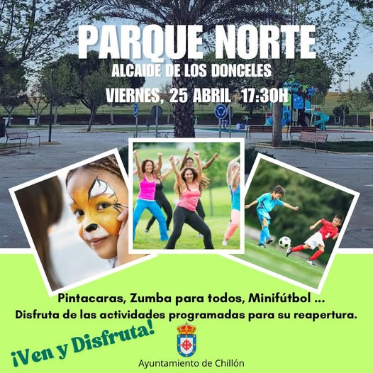 Este viernes, 25 de abril a las 17:30h, te esperamos en la gran reapertura del Parque Alcaide de los Donceles (Parque Norte) con una tarde llena de actividades para disfrutar en familia: