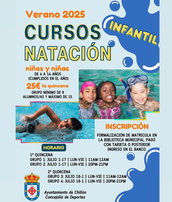 Ya está abierto el plazo de inscripción para el curso de natación infantil (para niños y niñas de 4 años, cumplidos hasta junio, a 14 años).