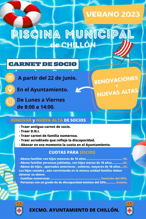 Ya puedes darte de alta o renovar el carné de socio para la temporada de piscina 2023 en el Ayuntamiento.