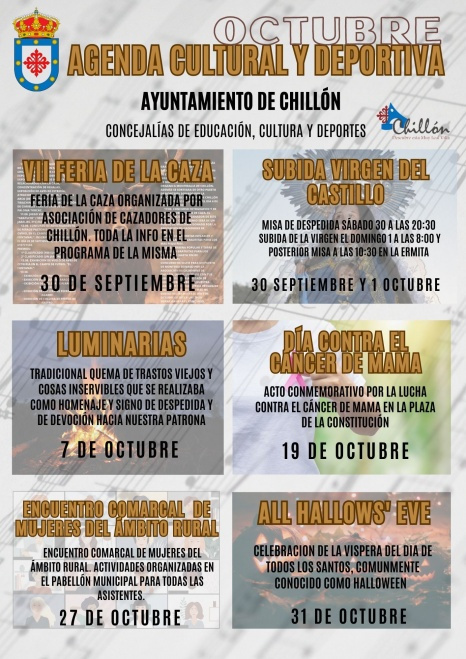 Información mensual de la agenda cultural y deportiva para el mes de octubre.