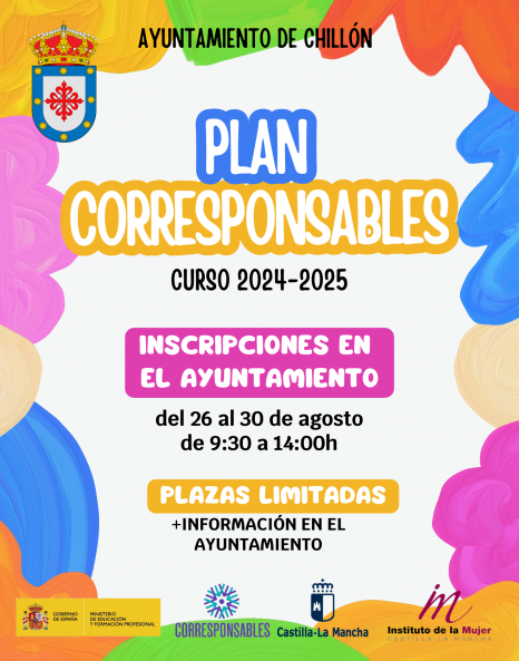 El Plan Corresponsables está gestionado por el Instituto de la Mujer de Castilla la Mancha y financiado con fondos finalistas procedentes del Ministerio de Igualdad.