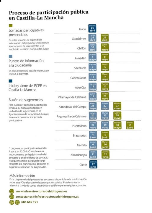 Recuerda, hoy miércoles 30 de abril a las 12:00 h tendrás disponible un punto de información sobre el proceso de participación pública relacionado con el proyecto de infraestructuras de hidrógeno.