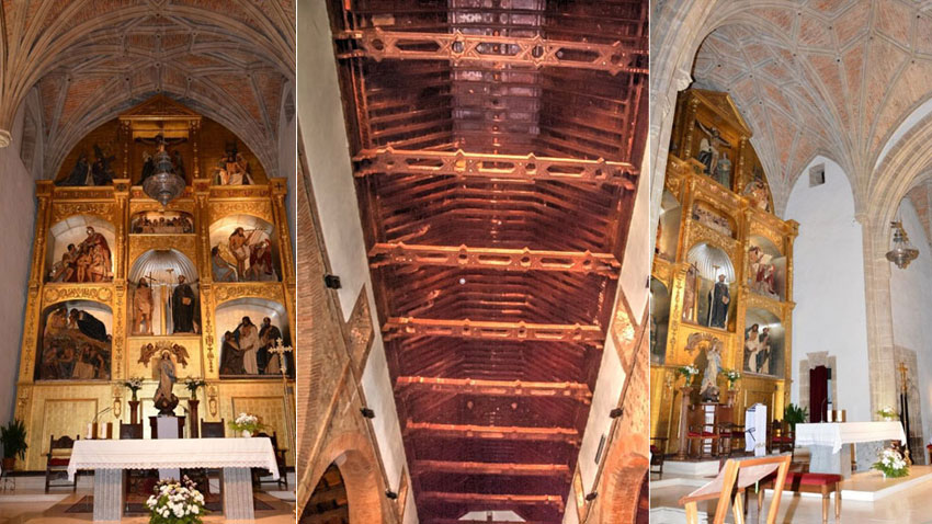 La estructura de la cubierta de la nave central está formada por un artesonado de arte mudéjar, realizado en carpintería a lo blanco, presentando en las incrustaciones de madera blanca una diversa gama de lazos, y alterna esta técnica con dibujos de flores exóticas y de vivos colores, siendo los más utilizados el negro, rojo, azul y verde. Su fecha de construcción podría ser la segunda mitad del siglo XVI.