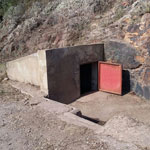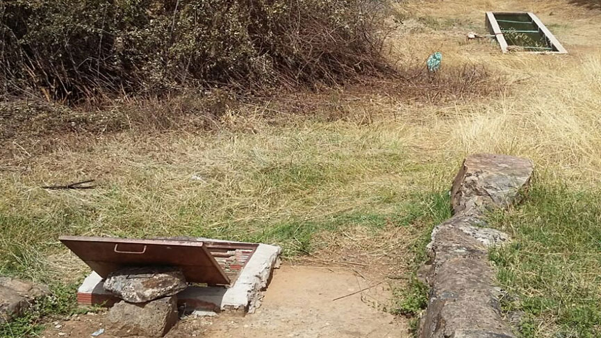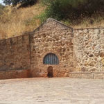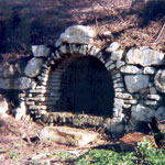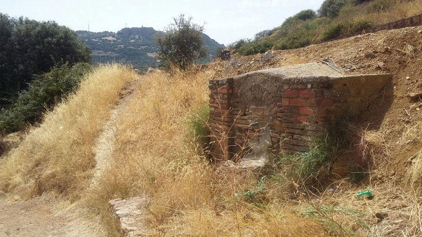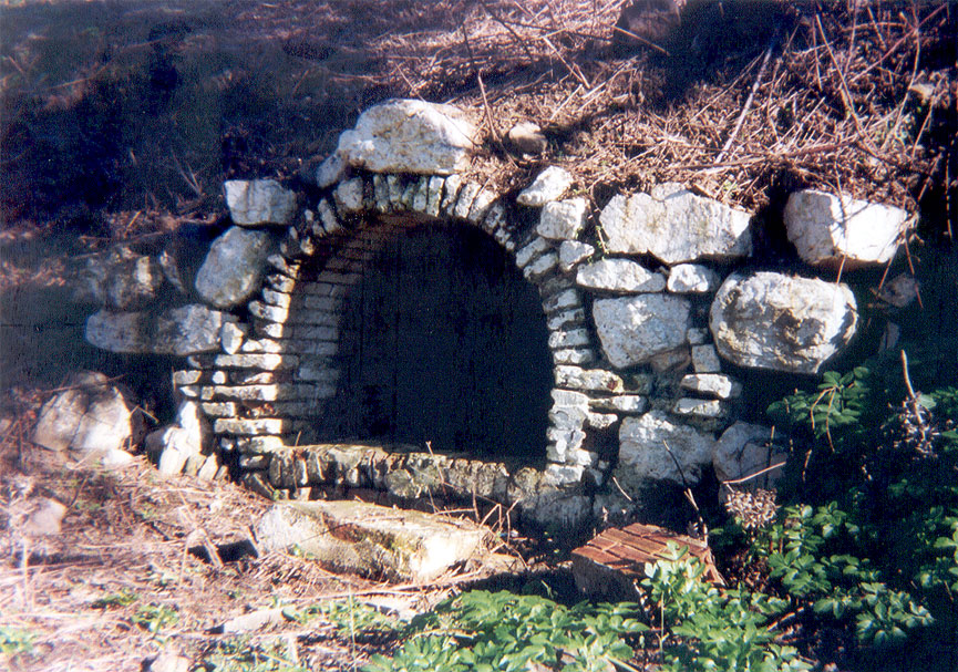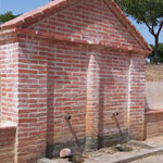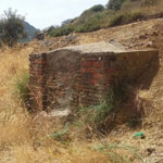 Pequeño manantial de agua con estructura abovedada construida a base de ladrillo y piedra.
